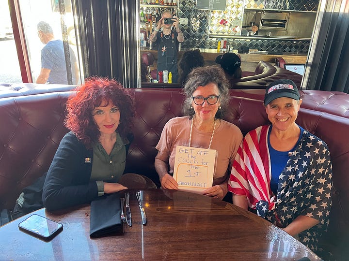 An hour later I was in the Roosevelt Bar across the street having lunch with fellow activists (who I just met) when we saw the announcement that Kimmel is coming back. I am happy for everyone at Kimmel. I am also happy for our country that Disney heard their brand crashing. All that stock being sold and people unplugging perhaps got to them. Perhaps.