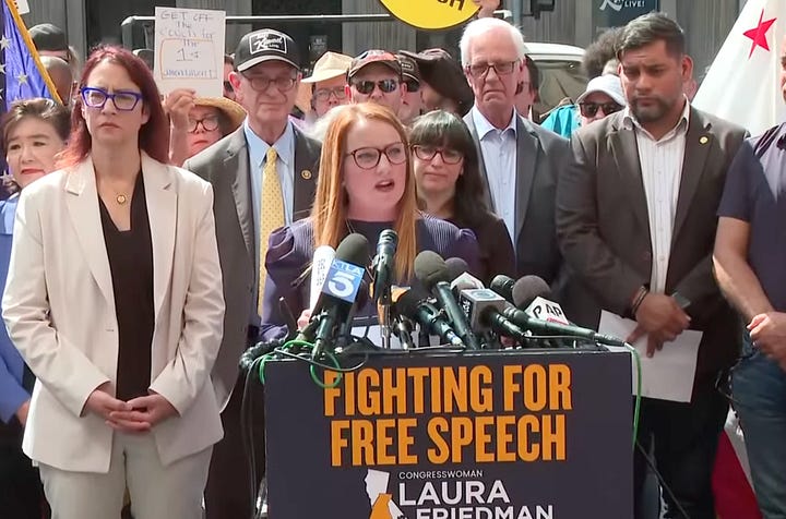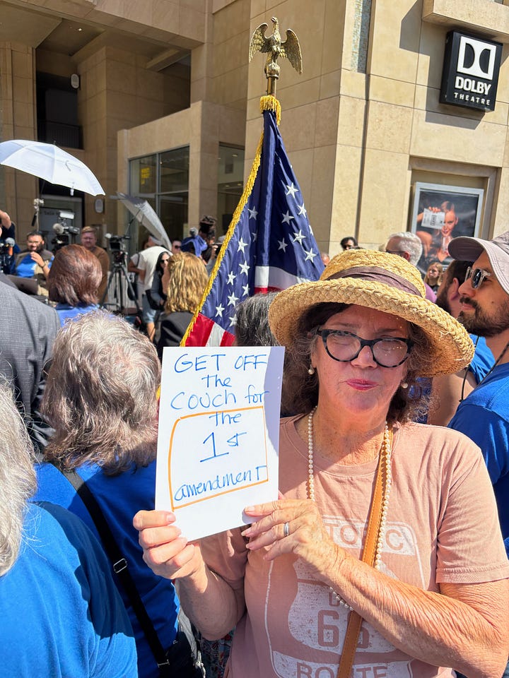 I then hopped on the La Brea bus to get to a protest I heard was happening on Hollywood Blvd across the street from the El Capitan, where Jimmy shoots his show. It turned out to be a press conference with Laura Friedman, Ted Lieu, other congress peeps along with union reps and with super local electeds like Hugo (City Council) and County Supervisor Lindsey Horvath (great speech).
